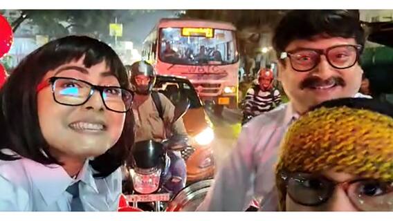 কলকাতা: স্কুলের পোশাক। গাঢ় নীল প্যান্ট-স্কার্ট, সাদা শার্টে সেজেছেন ছবির নায়ক নায়িকা। গার্গী রায়চৌধুরী (Gargee Roychowdhury) আর শিবপ্রসাদ মুখোপাধ্যায় (Shiboproshad Mukherjee)। সঙ্গে তিন খুদে। ঋতদীপ সেনগুপ্ত (Rwitodeep Sengupta), শ্রেয়ান সাহা (Shreyan Saha) ও অরিত্রিকা চৌধুরী (Aritrika Chowdhury)।