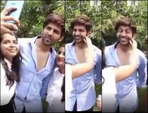 সেলফি তোলার পর কার্তিক আরিয়ানের গাল টেনে দিলেন অনুরাগী