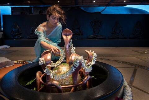 নীল শাড়ি পরে শিব পুজো করছেন কঙ্গনা রানাউত, ছবি পোস্ট করেছেন কঙ্গনার বোন রঙ্গোলি চান্দেল।