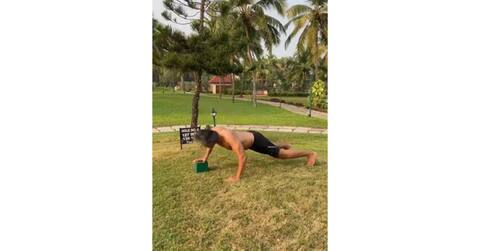 ইনস্টাগ্রামে পোস্ট করা ভিডিওতে দেখা যাচ্ছে, রিসর্টের বাগানে একটি শক্ত বস্তু রেখে পুশ আপ করছেন তিনি। গত মাসে স্ত্রী অঙ্কিতা কোনারের সঙ্গে গোয়ায় ঘুরতে যান মিলিন্দ।