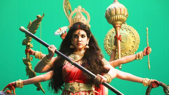 অফার আসার পরে, প্রথমে নাকি হাত থেকে ফস্কেই যেতে বসেছিল দুর্গা হওয়ার সুযোগ! কী করে? রাজনন্দিনী বলছেন, 'প্রথমে প্রযোজনা সংস্থার তরফ থেকে আমায় বলেছিল, কিছু নাচের ভিডিও পাঠানোর জন্য। তখনও আমি জানতাম না কী কাজ হচ্ছে। ভিডিও পাঠানোর পরে আমার কাছে কাজের অফারটা আসে। তবে সেই সময়ে বলা হয়নি কিসের শ্যুটিং। তবে আমি আন্দাজ করেছিলাম, নাচ বিষয়ক কিছু। আর নাচ নিয়ে যে কোনও জিনিস হলেই আমি তার সঙ্গে যুক্ত থাকতে ভীষণ পছন্দ করি। তবে এমন সময় অফারটা আমার কাছে এল, যখন আমি অন্য একটা কাজে ব্যস্ত। আমি হইচই-কে বলেছিলাম, যদি প্রোজেক্টটা একটু পিছনো যা। তবে তখন তাঁরা রাজি হননি। আমি ভেবেই নিয়েছিলাম, কাজটা হাত থেকে চলেই গেল। তবে ২ সপ্তাহ পরে ওঁরা আবার আমায় ফোন করেন। জানান, কাজটি পিছোচ্ছে আর সেই কারণে ওঁরা আমাকেই চাইছেন। সেই সময়ে আমার কোনও কাজ ছিল না তাই রাজি হয়ে যাই। কাজে যোগ দেওয়ার পরে জানতে পারি, আমায় দুর্গার চরিত্রের জন্য বেছে নেওয়া হয়েছে। মাকে বলেছিলাম, কাজটা আমার কপালে ছিল। নাহলে এই মহিষাসুরমর্দিনী আমার করাই হত না।'