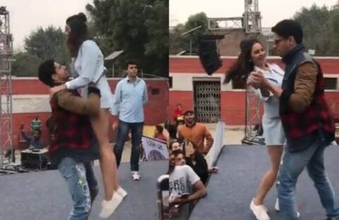 [embed]https://twitter.com/aiyaary/status/963015133164376064[/embed]ভিডিওতে দেখা যায়, নাচের একটি স্টেপ করতে গিয়ে সিদ্ধার্থ তাঁর সহ-অভিনেত্রীকে কোলে তুলে নিচ্ছেন। রাকুলের পোশাক ঠিকমতো সেট ছিল না। ফলে, সিদ্ধার্থ যেই তাঁকে কোল থেকে নামান, অভিনেত্রীকে দেখা যায় নিজের পোশাক ঠিক করছেন।