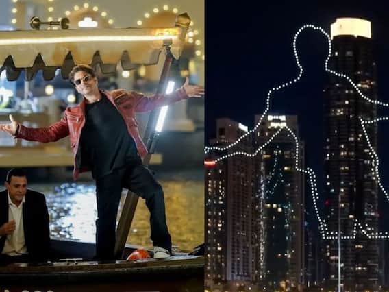 নয়াদিল্লি: চলতি বছরে তৃতীয়বার রুপোলি পর্দায় (Silver Screen) ফেরার জন্য একেবারে তৈরি শাহরুখ খান (Shah Rukh Khan)। রাত পোহালেই বিশ্বজুড়ে মুক্তি পাবে কিং খান (King Khan) অভিনীত ও রাজকুমার হিরানি (Rajkumar Hirani) পরিচালিত 'ডাঙ্কি' (Dunki)। মঙ্গলবার ছবির প্রচারে নতুন মাত্রা যোগ করল দুবাই (Dubai)। সোশ্যাল মিডিয়া ভাইরাল হল ভিডিও ও ছবি, দুবাইয়ের আকাশে ড্রোন মারফৎ আলো জ্বালিয়ে তৈরি হল কিং খানের বিখ্যাত দুই হাত ছড়ানো পোজ। এছাড়া বুর্জ খলিফায় (Burj Khalifa) দেখানো হল 'ডাঙ্কি'র ট্রেলার।
