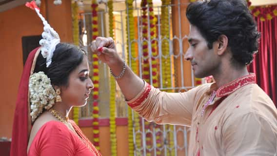 স্বর্ণময়ী মেঘলাকে সঙ্গে নিয়েই ইভানকে সান্যাল বাড়িতে বসবাস শুরু করার প্রস্তাব দেন। সান্যাল বাড়িতে যাওয়ার দিন সকালে ইভান আর মেঘলা একটা মন্দিরের সামনে দেখা করে, মেঘলা বিবাহিত নারীদের মতন সাজসজ্জা করার পরেও ইভান খেয়াল করে তার মাথায় সিঁদুর নেই। তাড়াহুড়োয় ইভান নিজেই মেঘলার মাথায় আচমকা সিঁদুর পরিয়ে দেয়। ইভানের কাছে ঘটনাটা সামান্য হলেও, ভয়ানক চমকে যায় মেঘলা। স্বাভাবিকভাবেই কোনও মেয়ের কাছে সিঁদুরের গুরুত্ব অপরিসীম। সান্যাল বাড়িতে যাওয়ার তাড়া থাকায়, এই ঘটনা নিয়ে মেঘলা বিশেষ কিছু বলার সুযোগ পায় না। ইভানের পরিয়ে দেওয়া সিঁদুর মাথায় নিয়েই সান্যাল বাড়িতে পা দেয় মেঘলা ইভানের বিবাহিত স্ত্রী হিসেবে। সেখানে সমস্ত রীতি রেওয়াজ মেনে তাকে নববধূ হিসেবে বরণও করা হয়। এভাবেই ঘটনা পরম্পরায় মেঘলা আর ইভান হয়ে ওঠে একে অপরের স্বামী-স্ত্রী। পরবর্তীতে তাদের এই বিয়ে তথা বিবাহিত জীবন কোন পথে এগোবে, সেটা ক্রমশ প্রকাশ্য।