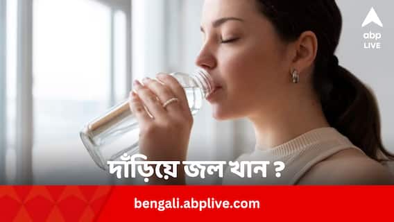 বসে মেরুদন্ড সোজা করে জল খাওয়াই বিজ্ঞানসম্মত পদ্ধতি। রাস্তার মধ্যে কোথাও জল খেতে হলেও এক জায়গায় বসে জল খান।