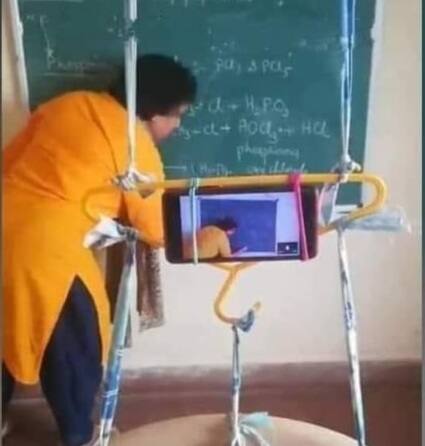 ট্রাইপড নেই, নিজের মতো ব্যবস্থা করে অনলাইন ক্লাস শিক্ষিকার, উচ্ছ্বসিত প্রশংসা সোশ্যাল মিডিয়ায়