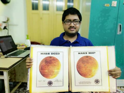 শ্রীরামপুর: মঙ্গল গ্রহে তিন হাজার টাকায় ১ একর জমি কিনে মঙ্গলে যাবার স্বপ্ন দেখছেন শ্রীরামপুরের শৌনক দাস! এক কাটা বা দুই কাঠা নয়, মঙ্গলগ্রহে একেবারে ১ একর জমির মালিক হলেন শ্রীরামপুর চাতরার ধর্মতলার বাসিন্দা শৌনক। পেশায় একটি বেসরকারী সংস্থার ইন্সুইরেন্স কোম্পানিতে উচ্চপদস্থ কর্মচারী শৌনক। এরই পাশাপাশি বিভিন্ন গ্রহ, নক্ষত্র, গুগল ছাড়াও নানা বিষয়ে বরাবরই তাঁর আগ্রহ। গুগলের দপ্তরেও তিনি আমন্ত্রিত হয়ে গিয়েছেন।এমনই এক দিন গুগল সার্চ করতে গিয়ে হঠাতই তিনি দেখেন, মঙ্গলে জমি ব্রিক্রি চলছে। সঙ্গে সঙ্গে তিনি সেখানে জমি কেনার জন্য আবেদন করেন। ফলস্বরূপ বেশ কিছু দিন আগে তার কাছে মঙ্গলে জমির মালিক হয়েছেন জানিয়ে নাসার অনুমোদিত একটি বেসরকারি সংস্থা থেকে জমির দলিল আসে। তাঁর কেনা তিন একর জমির দাম পড়েছে মাত্র তিন হাজার টাকা। জমি কেনার তালিকার মধ্যে গোটা বিশ্বের ১ কোটি ৩২ হাজার ২৯৫ জনের মধ্যে নাম রয়েছে এই বাঙালি যুবক শৌনকেরও। ইতিমধ্যেই আগামী বছরের ১৮ ই ফেব্রুয়ারী নাসা থেকে পাঠানো মহাকাশযান মঙ্গলগ্রহের মাটি ছোঁবে। সেই মহাকাশযানে বিশ্বে এতজন মানুষের সাথে মাইক্রো চিপে নাম থাকছে শৌনকেরও। ইতিমধ্যেই আগামী দিনে এদের মধ্যে মুষ্টিমেয় কয়েকজন সত্যি সত্যি মঙ্গলে পাড়ি দিচ্ছেন বলে জানিয়েছে নাসা ।সেই তালিকায় অবশ্য নাম নেই এই বঙ্গ-সন্তানের। তবে পরবর্তীকালে হয়তো তাঁর নাম সেই তালিকাতেও ঢুকে যাবে বলে স্বপ্ন দেখতে শুরু করে দিয়েছেন শৌনক। এরই পাশাপাশি নাসার তৈরি চন্দ্রযানের শৌচাগারের নকশা বানিয়েছেন এই যুবক। সারা বিশ্বের বহু ব্যক্তি নকশা পাঠিয়েছেন। ১ অক্টোবর জানা যাবে, কার নকশা গ্রহণ করেছে নাসা। শৌনকের বানানো নকশা যদি গৃহীত হয়, তাহলে তিনি আরও একটি নজির গড়বেন। শৌনক জানিয়েছেন, মঙ্গলগ্রহের মহাকাশযানের মাইকোচিপে চিপে তাঁর নাম ঠিকানা গিয়েছে। এর জন্য তিনি খুবই আনন্দিত। তিনি স্বপ্ন দেখেন মঙ্গলগ্রহে যাওয়ার সুযোগ পাবেন।