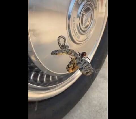 ভিডিওতে দেখা যাচ্ছে, একটি গাড়ির চাকার গায়ে মাকড়শার জালে আটকে পড়েছে সাপটি। সেটিকে মেরে ফেলেছে মাকড়শাটি। ট্যুইটারে ১৭ সেকেন্ডের ভিডিওটি ইতিমধ্যেই দেখে ফেলেছেন দেড় লক্ষেরও বেশি মানুষ। অনেকেই নানা মন্তব্য করছেন।
