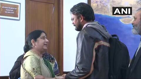 নয়াদিল্লি: ৬ বছর পর পাকিস্তানের জেল থেকে মুক্তি পেয়ে দেশে ফিরে বিদেশমন্ত্রী সুষমা স্বরাজের সঙ্গে দেখা করলেন হামিদ নিহাল আনসারি। আজ মা ফৌজিয়া আনসারিকে নিয়ে বিদেশমন্ত্রীর সঙ্গে দেখা করতে যান পেশায় সফটঅ্যয়ার ইঞ্জিনিয়ার হামিদ। তিনি আবেগতাড়িত হয়ে পড়ে সুষমাকে বলেন, ‘দয়া করে আমাকে ক্ষমা করে দিন। আপনাকে অনেক ধন্যবাদ।’ জবাবে বিদেশমন্ত্রী বলেন, ‘আপনার যথেষ্ট সাহস আছে। আপনার দুঃখিত হওয়ার কোনও কারণ নেই।’ সুষমাকে জড়িয়ে ধরে ফৌজিয়া বলেন, ‘আমার ভারত মহান। আমার ম্যাডাম মহান।’