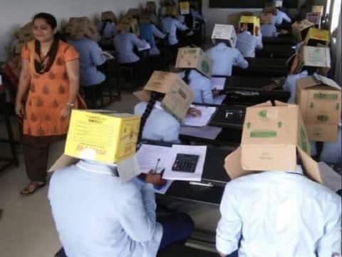 বেঙ্গালুরু: টোকাটুকি রুখতে আজব ব্যবস্থা নিল কর্নাটকের এক বেসরকারি প্রি ইউনিভার্সিটি কলেজ। অন্তত ৫০ জন পড়ুয়ার মাথায় কার্ডবোর্ডের বাক্স বসিয়ে পরীক্ষা দিতে বাধ্য করল তারা। এই ঘটনা নিয়ে সোশ্যাল মিডিয়ায় হইচই পড়ে গিয়েছে। জীবন মরণ কিছু নয়, ওই ছাত্রছাত্রীদের অর্থনীতি ও রসায়নের মিড টার্ম পরীক্ষা চলছিল। টোকাটুকি রুখতে তাঁদের মাথায় তিনদিন বন্ধ কার্ডবোর্ডের বাক্স বসিয়ে দেওয়া হয়, তবে লেখা আর দম টম নেওয়ার জন্য খোলা ছিল সামনের দিক। কিন্তু এদিক ওদিক উঁকি দেওয়ার উপায় ছিল না।