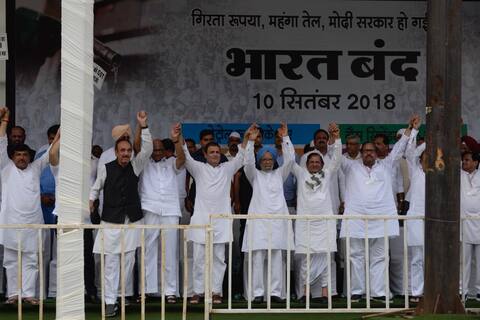 নয়াদিল্লি: ভারত বনধের দিন নয়াদিল্লির রামলীলা ময়দানে প্রতিবাদসভায় প্রধানমন্ত্রী নরেন্দ্র মোদীকে তীব্র আক্রমণ করলেন কংগ্রেস সভাপতি রাহুল গাঁধী। পেট্রোপণ্যের মূল্যবৃদ্ধি, রাফাল যুদ্ধবিমান, কৃষক আত্মহত্যা, মহিলাদের উপর অত্যাচার, বেকারত্ব সহ বিভিন্ন ইস্যুতে মোদীর বিরুদ্ধে নীরব থাকা নিয়ে প্রশ্ন তুলে রাহুলের দাবি, ঐক্যবদ্ধ বিরোধীরা আগামী নির্বাচনে বিজেপিকে পরাস্ত করবে। মোদীর শাসনে ঘৃণা ছড়িয়ে দেশে বিভাজন ঘটানো হচ্ছে বলেও অভিযোগ করেন তিনি। পাল্টা বিজেপির দাবি, জনসাধারণের মধ্যে বিভ্রান্তি, গুজব ছড়াতেই কংগ্রেস ও বিরোধী দলগুলির আজকের বনধ ডাকার উদ্দেশ্য। বিজেপি নেতা তথা কেন্দ্রীয় মন্ত্রী মুখতার আব্বাস নকভি কংগ্রেসকে তোপ দেগে বলেন, ক্ষমতায় থাকার সময় বারবার মূল্যবৃদ্ধি ঘটিয়ে এখন কুম্ভীরাশ্রু বর্জন করছে ওরা। পেট্রল, ডিজেলের লাফিয়ে লাফিয়ে দামবৃদ্ধির প্রতিবাদে কংগ্রেসের ডাকা ভারত বনধে আজ দেশের নানা রাজ্যে রাজ্যে বিরোধীদের বিক্ষোভ দেখায়। রাস্তায় নামেন স্বয়ং কংগ্রেস সভাপতিও। কৈলাস মানসসরোবর সফর থেকে ফিরেই রাজঘাট পৌঁছে মহাত্মা গাঁধীর প্রতি শ্রদ্ধা জানান রাহুল। রাজঘাট থেকে রামলীলা ময়দান পর্যন্ত পদযাত্রা করেন তিনি। সঙ্গে ছিলেন কংগ্রেসের শীর্ষ নেতারা। পা মেলান আরজেডি, এনসিপি, আম আদমি পার্টির নেতারাও। বিরোধী দলের লোকজন রাজ্যে রাজ্যে নানা জায়গায় পথ ও ট্রেন অবরোধ করেন। কংগ্রেসের দাবি, ২১টি দল তাদের বনধের ডাকে সাড়া দিয়ে সামিল হয়েছে। ভাষণ দিতে গিয়ে মোদীকে তীব্র কটাক্ষ করে রাহুল বলেন, ‘২০১৪ সালে দেশের মানুষ, যুব সমাজ, কৃষক ও মহিলাদের চাকরি ও সুরক্ষার প্রতিশ্রুতি দেন নরেন্দ্র মোদী। মানুষ তাঁকে বিশ্বাস করে সরকার গড়তে সাহায্য করেন। তিনি বলতেন, ৭০ বছরে কিছুই হয়নি। আমরা চার বছরে সেই কাজ করব। এটা ঠিক, তিনি চার বছরে তিনি যা করেছেন, সেটা ৭০ বছরে হয়নি। যেখানেই দেখবেন, একজন ভারতীয় অন্য একজনের সঙ্গে লড়াই করছে।যেখানেই যাবেন, জাত-ধর্মের ভিত্তিতে মানুষকে ভাগ করা হচ্ছে। একটি রাজ্যকে অন্য রাজ্যের বিরুদ্ধে লড়াইয়ে নামিয়ে দেওয়া হচ্ছে। এটাই বিজেপি-র সঙ্গে আমাদের পার্থক্য। দেশের মানুষ যেটা শুনতে চান, প্রধানমন্ত্রী সেটাই বলেন না। তিনি পেট্রোল ও ডিজেলের মূল্যবৃদ্ধি, কৃষকদের আত্মহত্যা, বিজেপি বিধায়কের বিরুদ্ধে ধর্ষণের অভিযোগ, রাফাল চুক্তি নিয়ে নীরব। আমরা প্রতিশ্রুতি দিচ্ছি, বিজেপি-কে ক্ষমতা থেকে সরানোর জন্য ঐক্যবদ্ধভাবে কাজ করব।’ এই সমাবেশে প্রাক্তন প্রধানমন্ত্রী মনমোহন সিংহ বলেন, ‘মোদী সরকার এমন অনেক কিছু করেছে, যা দেশের স্বার্থের সহায়ক নয়। এখন তারা সীমা ছাড়িয়ে গিয়েছে। এই সরকার বদলের সময় এসে গিয়েছে। সারা দেশের মান