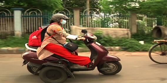 একপায়ে করোনার বিরুদ্ধে লড়ে যাচ্ছেন শামিমা ঘোষ। বাড়ি বেলেঘাটার সরকার বাগানে। একটি বেসরকারি ডায়গনস্টিক সেন্টারে স্যাম্পল কালেকশনের কাজ করেন। ১৪ বছর ধরে এই পেশার সঙ্গে যুক্ত। ছোট থেকেই, একটা পা নেই। কৃত্রিম পায়ের ওপরই ভরসা। তাতে জীবন থমকে যায়নি। করোনা আবহে, স্কুটিতে চেপে চষে বেরিয়েছেন কলকাতা।