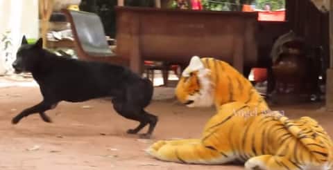 আচমকা খেলনা বাঘ দেখে পালাচ্ছে কুকুর-বাঁদর, ভিডিও ভাইরাল সোশ্যাল মিডিয়ায়