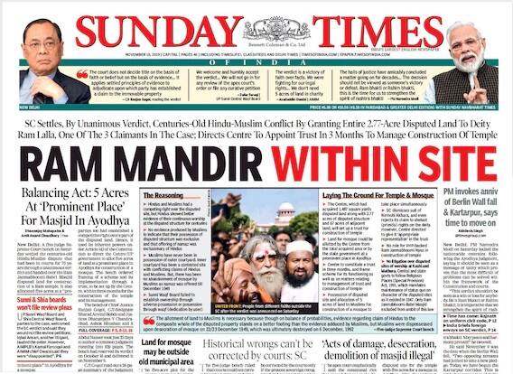 জন্মভূমিতেই রামমন্দির, মসজিদ অন্যত্র, অযোধ্যা রায় নিয়ে দেখে নিন দেশের একাধিক সংবাদপত্রের শিরোনাম
