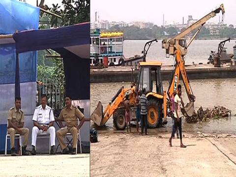 বিসর্জন ঘিরে ঘাটে জোর নিরাপত্তা, শোভাযাত্রার প্রস্তুতি রেড রোডে