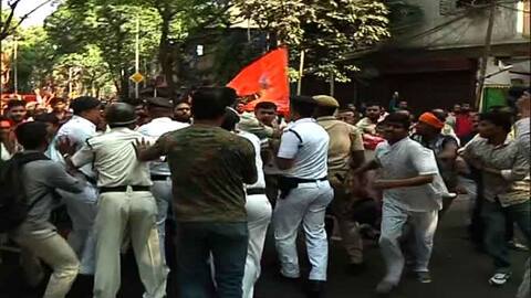 শিয়ালদায় হিন্দু জাগরণ মঞ্চের মিছিল ঘিরে অশান্তি। অনুমতি ছাড়াই মিছিল করার অভিযোগে পুলিশি বাধা।