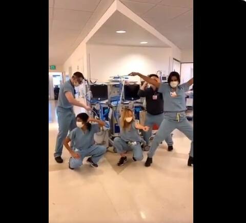 পৃথিবীজুড়ে করোনা ভাইরাসে আক্রান্তদের মৃত্যুমিছিল। সংক্রমণ ক্রমেই ছড়াচ্ছে। এই পরিস্থিতিতে করোনা জয় করা একটা বড় চ্যালেঞ্জ হয়ে দাঁড়িয়েছে। কিন্তু কিছু কিছু ছবি মনে আশা জাগাচ্ছে সকলের। যেমন ক্যালিফোর্নিয়ার হাসপাতালের এই ভিডিওটি। লস অ্যাঞ্জেলসে রোনাল্ড রিগন ইউসিএলএ মেডিক্যাল সেন্টারে আইসিইউয়ের ডাক্তারদের নাচতে দেখা গেল। এই হাসপাতালে সম্প্রতি সুস্থ হয়ে উঠেছেন দুজন কোভিড ১৯ আক্রান্ত রোগী।