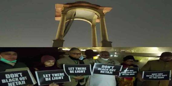অন্ধকারে ঢেকেছে ইন্ডিয়া গেটে সুভাষচন্দ্র বসুর (Netaji Subhas Chandra Bose) হলোগ্রাম মূর্তি। আলো নেই একটুও। ফলে দেখাই যাচ্ছে না মূর্তিটি। আর তা নিয়ে কার্যত প্রতিবাদে ফেটে পড়লেন তৃণমূল (TMC) সাংসদরা। বৃহস্পতিবার সন্ধেবেলা ইন্ডিয়া গেটে তাঁরা প্ল্যাকার্ড নিয়ে বিক্ষোভ দেখান সৌগত রায়, সুখেন্দুশেখর রায়রা।