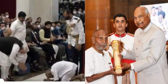 নয়াদিল্লি : যোগ অনুশীলনকারী, স্বামী শিবানন্দ, যোগার ক্ষেত্রে বিশেষ অবদানের জন্য সোমবার পদ্মশ্রীতে ভূষিত হয়েছেন। শিবানন্দ সম্ভবত দেশের ইতিহাসে সবচেয়ে বয়স্ক পদ্ম পুরস্কার বিজয়ী। তবে পুরস্কারগ্রহণের আগে তাঁর মুদ্রা দেখে সকলে উচ্ছ্বসিত। যোগগুরুর সামনে মাথা নোয়ালেন প্রধানমন্ত্রী মোদিও । তার আগে ১২৫ বছর বয়সের যোগগুরু সকলের সামনে নতজানু হন। এত অবলীলায় কীভাবে তিনি কার্পেটে হাঁটু মুড়ে, মাটিতে মাথা ঠেকালেন, তা দেখে তাজ্জব সকলে।