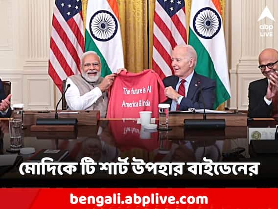 নয়া দিল্লি: মার্কিন যুক্তরাষ্ট্র (USA) সফরে রয়েছেন প্রধানমন্ত্রী (Prime Minister) নরেন্দ্র মোদি (Narendra Modi)। তিন দিনের সফরে আমেরিকার প্রেসিডেন্ট জো বাইডেন এবং ফার্স্ট লেডি জিল বাইডেনের সঙ্গে সাক্ষাৎ করে তাঁদের উপহার দিয়েছিলেন ভারতের প্রধানমন্ত্রী। এবার নমোকে একটি টিশার্ট গিফট করলেন জো বাইডেন। সেটি অবশ্য কোনও যে-সে টি শার্ট নয়! সেখানে লেখা রয়েছে মোদির ভাষণেরই একটি লাইন।
