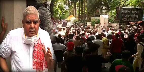 শেষে বাধ্য হয়ে নিজাম প্যালেসের সামনের রাস্তা বন্ধ করে দেয় পুলিশ। একটা সময় বাইরে উপস্থিত কর্মী-সমর্থকদের সঙ্গে নিরাপত্তায় মোতায়েন বাহিনীর সঙ্গে বচসা শুরু হয়ে যায়। পরিস্থিতি ধীরে ধীরে উত্তপ্ত হয়ে ওঠে।