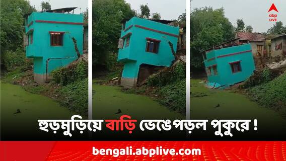 গোটা ঘটনা ক্যামেরাবন্দী হয়েছে। শুক্রবার সকাল থেকে ঝিরঝির করে বৃষ্টি হচ্ছিল হাওড়ার বাগনানে। বাগনান দুই নম্বর ব্লকের অন্তর্গত ওরফুলি অঞ্চলের বাঁকুড়দহ গ্রামের বাসিন্দা বিশ্বনাথ সামন্তর বাড়ি হুড়মুড়িয়ে পাশের পুকুরে ভেঙে পড়ে। যখন বাড়িটি ভেঙে পড়ে তখন ঘরের মধ্যে কেউ ছিলেন না। ফলে এই ঘটনায় কেউ আহত হয়নি। প্রাথমিকভাবে মনে করা হচ্ছে বাড়িটি পুকুরের ধারে হওয়ায় এবং বৃষ্টিতে মাটি নরম হয়ে যাওয়ায় বাড়িটি বসে গিয়ে ভেঙে পড়ে। এই ঘটনায় এলাকায় চাঞ্চল্য ছড়িয়ে পড়ে।