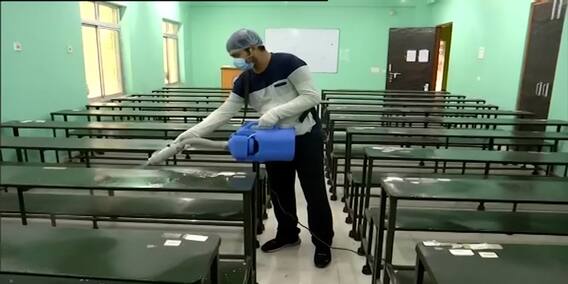 সোমবার, বিধাননগর মিউনিসিপ্যাল হাইস্কুল ও ভারতীয় বিদ্যাভবনে ক্লাসঘর স্যানিটাইজ করা হয়। দূরত্ব-বিধি বজায় রাখতে মেঝেয় গোল দাগ ও ক্লাসঘরের বেঞ্চে আসন মার্কিং করা হয়। স্কুলের বাইরে যাতে আবর্জনা না জমে, তার জন্য সতর্ক করা হচ্ছে পুরসভার তরফে।