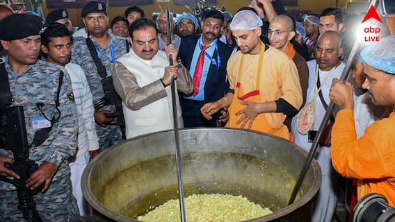 এদিন সকাল ৮টায় ব্যক্তিগত বিমানে আমদাবাদ থেকে প্রয়াগরাজে সস্ত্রীক পৌঁছন শিল্পপতি। এরপর ১৮ নম্বর সেক্টরে অবস্থিত ইসকন ভিআইপি তাঁবুতে পৌঁছন তিনি। সেখান থেকে ইসকন মন্দিরে প্রার্থনা করার পর তিনি সোজা চলে যান ইসকনের রান্নাঘরে। এরপর তীর্থযাত্রীদের মধ্যে প্রসাদ বিতরণ করেন।