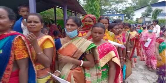 গতকাল চাঁচলে প্রথম দিনের দুয়ারে সরকার শিবিরে উপচে পড়ে ভিড়। অধিকাংশের মুখে ছিল না মাস্ক। রাজ্যের নয়া প্রকল্প 'লক্ষ্ণীর ভাণ্ডার' ফর্মের জন্য দীর্ঘক্ষণ লাইন দাঁড়িয়ে থাকেন মহিলারা। স্বাস্থ্যবিধি উপেক্ষা করেই সরকারি প্রকল্পের আবেদন চলে। প্রথম দিনে সোমবার মালদার চাঁচল-১ নং ব্লকের কলিগ্রাম গ্রাম পঞ্চায়েতে শুরু হয় দুয়ারে সরকার শিবির। ভোর থেকেই ক্যাম্পে ভিড় জমান মহিলারা। তবে সকাল দশটায় শুরু হয় ফর্ম বিলির কাজ। গরমে হাঁসফাস করে লাইনে দাঁড়িয়ে ছিলেন মহিলারা। গোটা ঘটনায় কার্যত স্বাস্থ্যবিধি শিকেয় ওঠে।