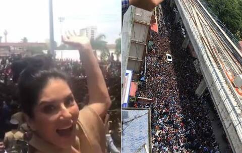 কোচি:বলিউড অভিনেত্রী সানি লিওনকে এক ঝলক দেখতে কেরলের কোচিতে ভিড় উপচে পড়েছিল। এসেছিলেন হাজার হাজার মানুষ। ফলে বেশ কয়েক ঘন্টা অবরুদ্ধ হয়ে পড়েছিল শহরের একটি গুরুত্বপূর্ণ রাস্তা।বন্ধ হয়ে যায় যান চলাচল। এই ঘটনায় একটি মোবাইল স্টোরের মালিক ও আরও ১০০ জনের বিরুদ্ধে মামলা দায়ের করল পুলিশ। গতকাল কোচির এমজি রোডের ওই মোবাইল স্টোরের উদ্বোধনের জন্য গিয়েছিলেন সানি। সেখানে ভিড় সামলাতে হিমশিম খেয়ে যায় পুলিশ। সানি অবশ্য নিজের এই জনপ্রিয়তা দেখে যারপরনাই খুশি। নিজের ইন্সটাগ্রাম অ্যাকাউন্টে অনুরাগীদের ভিড়ের একটি ভিডিও পোস্ট করে তাঁর উচ্ছ্বাসের কথা জানিয়েছেন সানি। তিনি লিখেছেন, বলার মতো কোনও ভাষা নেই। কোচির মানুষকে ধন্যবাদ জানানোর মতো শব্দ তিনি খুঁজে পাচ্ছেন না।