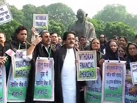 সুর চড়িয়ে নোট ইস্যুতে সংসদের সামনে প্ল্যাকার্ড-কালো পোশাকে ধর্নায় তৃণমূল