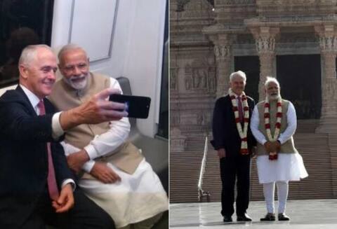 নয়াদিল্লি: অস্ট্রেলিয়ার প্রধানমন্ত্রী ম্যালকম টার্নবুলকে নিয়ে মেট্রো রেলে চড়ে অক্ষরধাম মন্দিরে গেলেন ভারতের প্রধানমন্ত্রী নরেন্দ্র মোদী। প্রথমে টার্নবুলকে নিয়ে মান্ডি হাউস স্টেশনে আসেন মোদী। সেখানে মেট্রো সংক্রান্ত বিভিন্ন তথ্য তিনি অসি প্রধানমন্ত্রীকে জানান। স্টেশনে তখন মোদীকে দেখে যাত্রীরা চমকে গিয়েছেন। তাঁদের কেউ কেউ মোদী, মোদী, ভারত মাতা কী জয় স্লোগানও তুললেন। মান্ডি হাউস থেকে মেট্রো চড়ে অক্ষরধামে পৌঁছন মোদী। ট্রেনে আসার পথেই মোদী ও টার্নবুল বেশ কয়েকটি সেলফিও তোলেন। অস্ট্রেলিয়ার প্রধানমন্ত্রী এই ছবি ট্যুইটারে শেয়ারও করেছেন। সবচেয়ে বড় কথা হল, মোদী ও টার্নবুলের জন্য সাধারণ যাত্রীদের মেট্রো রেল ব্যবহারে কোনও ব্যাঘাত ঘটেনি। মোদীর সঙ্গে তোলা সেলফি শেয়ার করে অসি প্রধানমন্ত্রী লেখেন, দিল্লি মেট্রোতে চড়ে অক্ষরধাম মন্দিরে যাচ্ছি। যাত্রা পথে স্টেশনগুলি অপেক্ষমান যাত্রীদের উদ্দেশে হাত নেড়ে শুভেচ্ছা বিনিময় করেন দুই দেশের প্রধানমন্ত্রী। মোদীও ট্যুইট করে অক্ষরধাম মন্দিরে পৌঁছনোর কথা জানান। মোদী টার্নবুলকে মন্দিরের সাংস্কৃতিক ঐতিহ্য সম্পর্কে অবহিত করেন। এরপর ব্যাটারি গাড়িতে চড়ে তাঁরা মন্দির চত্বর ঘুরে দেখেন।