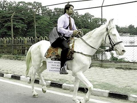নিত্য যানজট: চাকরির শেষদিন ঘোড়ায় চড়ে অফিস গেলেন সফটওয়ার ইঞ্জিনিয়ার!
