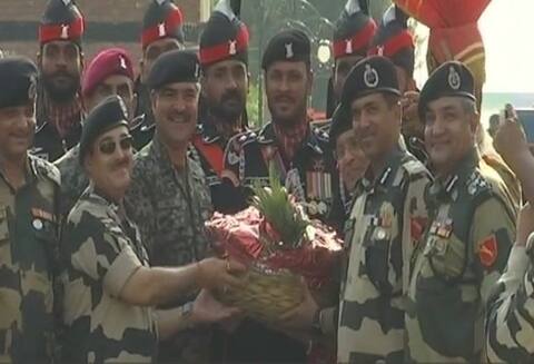 আটারি: স্বাধীনতা দিবস উপলক্ষ্যে ওয়াঘা-আটারি সীমান্তে মোতায়েন ভারতের সীমান্ত রক্ষী বাহিনী (বিএসএফ) জওয়ানদের মধ্যে উত্সবের আমেজ। এই বিশেষ দিনটিতে সীমান্তের ওপারে পাক রেঞ্জার্সদের মিষ্টির বাক্স উপহার দিল বিএসএফ। মিষ্টি উপহার দেওয়ার সময় দুই দেশের বাহিনীর মধ্যেই ছিল খুশির মেজাজ। দুই পক্ষই একে অপরের সঙ্গে করমর্দন ও আলিঙ্গন করে। পাশাপাশি চলে শুভেচ্ছা বিনিময়। গতকাল পাকিস্তানের স্বাধীনতা দিবস উপলক্ষ্যে পাক রেঞ্জার্স বিএসএফ-কে মিষ্টির বাক্স উপহার দিয়েছিল।