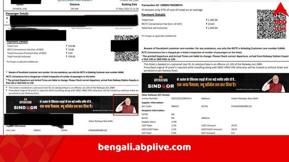 ট্রেনের টিকিটেও এই মুহূর্তে Operation Sindoor জায়গা করে নিয়েছে। অনলাইনে কেনা টিকিটে সিঁদুর কৌটো সম্বলিত সেই ছবির পাশে মোদির ছবি রয়েছে, যেখানে কপালে হাত ঠেকিয়ে সেলামরত রয়েছেন তিনি। সেই সঙ্গে লেখা রয়েছে, ‘Operation Sindoor সন্ত্রাসের বিরুদ্ধে নতুন লক্ষ্মণরেখা টেনে দিয়েছে… এক নতুন উচ্চতা, নতুন মানদণ্ড নির্ধারণ করেছে’। নতুন টিকিটের ওই ছবি সোশ্যাল মিডিয়ায় তুলে ধরেছেন অনেকেই। আর সেই নিয়েই বিতর্ক শুরু হয়েছে। (Narendra Modi)