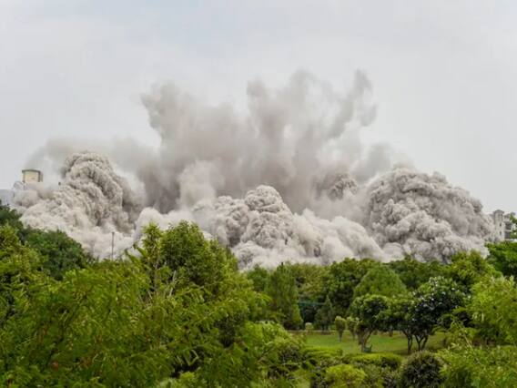 বিস্ফোরণের টুকিটাকি...গত রবিবার ঝর্ণা বিস্ফোরণের মাধ্যমে সুপারটেক প্রাইভেট লিমিটেডের ওই জোড়া ইমারত ভেঙে ফেলা হয়। তা থেকে তৈরি হয় প্রায় ৮০ হাজার টন ধ্বংসাবশেষ। কেঁপে ওঠে ৫০০ মিটার দূরের এলাকাও। বিশেষজ্ঞরা জানিয়েছেন, ওই ধ্বংসাবশেষ সরাতে অন্তত তিন মাস লাগতে পারে। দূষণের মাত্রা মাপতে এসেছিল বিশেষ ডাস্ট মেশিন। ধুলোয় ঝড় সামলাতে আসে স্মগ গান। আশপাশের বাড়ির ছাদ থেকে জলের ফোয়ারা ছেটাতে থাকে দমকল। তবে বিস্ফোরণের অভিঘাতে নয়ডায় পাশের এটিএস সোসাইটির দেওয়ালে হালকা ফাটল ধরেছে বলে খবর। ক্ষতি হয়েছে গাছের। তাতে পুরু ধুলোর আস্তরণও পড়েছে। বিস্ফোরণের প্রায় ৭ ঘণ্টা পর ফেরানো হয় আশেপাশের আবাসনের বাসিন্দাদের। কিন্তু দূষণের মাত্রার বিষয়টি চাঞ্চল্যকর, মানছেন অনেকেই।
