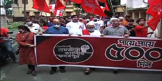 যাদবপুর থেকে শুরু হওয়া শ্রমজীবী ক্যান্টিন এখন ছড়িয়ে পড়েছে গোটা রাজ্যে। করোনার প্রথম ঢেউ, দ্বিতীয় ঢেউয়ে অসংখ্য মানুষের অন্নসংস্থানের ব্যবস্থা হয়েছে শ্রমজীবী ক্যান্টিনের মাধ্যমে। এক বছরে সর্ষের তেলের লিটারে বেড়েছে ৫০ টাকা, কিন্তু শ্রমজীবী ক্যান্টিনে খাবারের দাম রয়েছে সেই ২০ টাকাই। ২০০ জনকে দিয়ে শুরু হলেও, এখন প্রতিদিন ৭০০ জনের খাবারের ব্যবস্থা হচ্ছে। এই উদ্যোগের সঙ্গে যুক্ত হতে অনেকে জন্মদিন, অন্নপ্রাশন পালন করছেন শ্রমজীবী ক্যান্টিনের মাধ্যমে। রোজ অন্তত ২০০ জনকে বিনা পয়সায় দেওয়া হচ্ছে গরম ভাত, ডাল, তরকারি মাছ। যাদবপুরে শ্রমজীবী ক্যান্টিনের ৫০০ দিন উপলক্ষে সেখানে যোগ দেন বামফ্রন্ট চেয়ারম্যান বিমান বসু, সুজন চক্রবর্তী, বিকাশ ভট্টাচার্যরা।