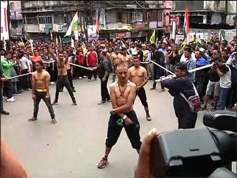 দার্জিলিং: পাহাড়ে আন্দোলনের ধার বাড়াচ্ছে মোর্চা। চকবাজারে পিঠে টিউবলাইট ভেঙে, জিটিএ চুক্তির কপি পুড়িয়ে বিক্ষোভ যুব মোর্চা সমর্থকদের। অশান্তির আগুন ছড়িয়েছে তাকদা পর্যন্ত। পৃথক গোর্খাল্যান্ডের দাবিতে আন্দোলনকে মঙ্গলবার এভাবেই ফের চরমে নিয়ে গেল গোর্খা জনমুক্তি মোর্চা। যা ঘিরে উত্তপ্ত হয়ে উঠল দার্জিলিং। মোর্চার তরফে আগেই হুঁশিয়ারি দেওয়া হয়, মঙ্গলবার থেকে তারা আন্দোলন চূড়ান্ত পর্যায়ে নিয়ে যাবে। এদিন সকাল দশটা নাগাদ দার্জিলিং স্টেশন থেকে চকবাজারের দিকে এগোতে শুরু করে যুব মোর্চার মিছিল। সেখানে পৌঁছেই পিঠে পিঠে একের পর এক টিউবলাইট ভাঙতে শুরু করেন মোর্চা সমর্থকরা। জিটিএ চুক্তির কপি একত্রিত করে ধরিয়ে দেওয়া হয় আগুন। তারপর আগুন ঘিরে পৃথক গোর্খাল্যান্ডের দাবিতে চলে স্লোগান। ততক্ষণে বিভিন্ন দিক থেকে মিছিল করে চকবাজারে জমা হয়েছেন প্রায় পনেরো হাজার মোর্চা সমর্থক। ঘণ্টা দেড়েক ধরে এখানে চলে বিক্ষোভ, স্লোগান।