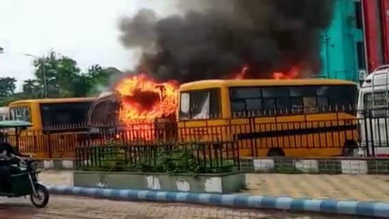 পার্কিং লটে পর পর বাসের সারি। তার মাঝেই দাউ দাউ করে জ্বলছে একটা মিনিবাস। আকাশচুম্বী কালো ধোঁয়া। আগুন ছড়িয়ে পড়ল পাশের বাসেও। হাওড়ার ডুমুরজলা স্টেডিয়াম লাগোয়া তাঁতিপাড়া পার্কিং লটে দাঁড়িয়ে থাকা তিনটি বাস ভস্মীভূত। আংশিক ক্ষতিগ্রস্ত হয়েছে আরও একটি বাস।