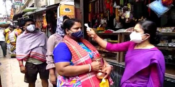 তারকেশ্বর মন্দিরে প্রবেশের আগে প্রত্যেক পুণ্যার্থীকে থার্মাল চেকিং করা হচ্ছে স্থানীয় পৌরসভার উদ্যোগে। অতিরিক্ত তাপমাত্রা থাকলে পুণ্যার্থীদের র্যাপিড টেস্ট করার ব্যবস্থা করা হয়েছে। সেক্ষেত্রে নেগেটিভ রিপোর্ট থাকলে তবেই মন্দিরে প্রবেশের অনুমতি মিলছে।