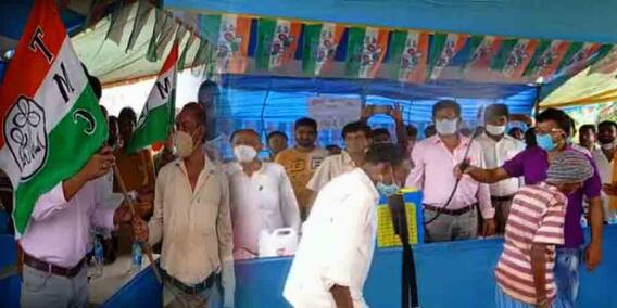 এবার বীরভূমে স্যানিটাইজ করে বিজেপি কর্মীদের যোগদান তৃণমূলে!