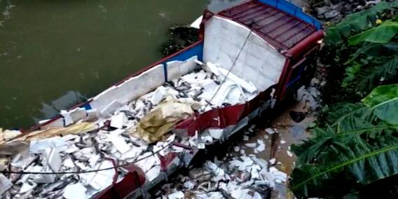 রাজা চট্টোপাধ্যায়, জলপাইগুড়ি: বৃহস্পতিবার ভোরে ভয়াবহ দুর্ঘটনা জলপাইগুড়ির ধূপগুড়িতে। ট্যাংকারের সঙ্গে সংঘর্ষে ঝুমুর নদীতে উলটে পড়ে যায় মাছ বোঝাই লরি। মৃত্যু হয়েছে লরির খালাসির। রাস্তায় মাছ পড়তেই, শুরু হয় লুঠপাট। এরপর বাকি মাছ উদ্ধার করে সুপারমার্কেটে সংরক্ষণ করেছে পুলিশ।