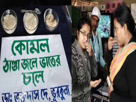 বর্ধমান: কথায় বলে, একটা ভাত টিপলেই টের পাওয়া যায় হাঁড়ির হাল। কিন্তু সে তো গরম ভাতের কথা। বিজ্ঞানীদের দাবি, ভাতের এই গরম-গরিমা আর বেশি দিন নয়। কারণ, হাতে এসেছে নতুন এক চাল। যে চাল থেকে ভাত হবে ঠান্ডা জলের ছোঁয়ায়। মঙ্গলবার বর্ধমানের মাটি উথসবে সেই চালের কথা বলেন মমতা বন্দ্যোপাধ্যায়। তিনি জানান, এই চাল গুড় ও দই দিয়ে খাওয়া যায়। চালের নাম, কোমল। যেমন নাম, তেমন স্বভাব। জলে পড়লেই গলে ভাত। এই চালের ইতিহাস নাকি, ৫০০ বছরের পুরনো। ব্যাপক ব্যাবহার হত যুদ্ধক্ষেত্রে সৈন্যদের খাবারের বন্দোবস্ত করতে। এক সময় চাষ হত অসমে। দূর-দূরান্তে কাজ যাওয়া শ্রমিকের ঝোলায় থাকত কোমল চাল। খিদে পেলে জলে ডুবিয়ে নিলেই হল। ভাত তৈরি। জ্বালানির খরচ বা বা রান্না করার ঝঞ্ঝাট নেই। তবে এখন আর তত চাষ হয় না অসমে। কোমলের চাষবাস চলছে নদিয়ার ফুলিয়ায় কৃষি প্রক্ষিণকেন্দ্রে। কৃষি প্রক্ষিণ কেন্দ্রের স্টলে কোমল চাল দেখতে ভিড় করছেন স্থানীয় বাসিন্দারা।