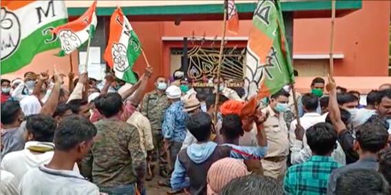 হংসরাজ সিংহ, পুরুলিয়া: জেলার রঘুনাথপুর ১ নম্বর ব্লকের বিজেপি পরিচালিত শাকা গ্রাম পঞ্চায়েতে একাধিক দুর্নীতির অভিযোগ তুলে বিক্ষোভ কর্মসূচিতে শামিল হল তৃণমূল কংগ্রেস। এদিন আবাস যোজনা সহ ১০০ দিনের কাজ ও একাধিক সরকারি প্রকল্পে দুর্নীতির অভিযোগ তুলে প্রধান কে স্মারকলিপি তুলে দেয় তৃণমূলের প্রতিনিধি দল। এই ঘটনাকে কেন্দ্র করে টানটান উত্তেজনা ছড়ায় পঞ্চায়েত কার্যালয়ের সামনে। তৃণমূলের বিরুদ্ধে বহিরাগতদের এনে এলাকা অশান্ত করার অভিযোগ তুলে বিক্ষোভ দেখায় বিজেপি কর্মী সমর্থক যদিও বিশাল সংখ্যক পুলিশের মধ্যস্থতায় কোন অপ্রীতিকর ঘটনা ঘটেনি।