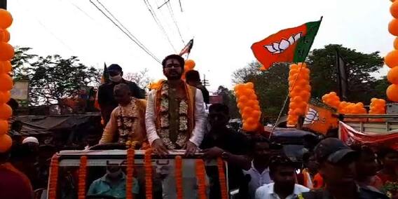 কৌশিক গাঁতাইত, খড়গপুর: দিলীপ ঘোষের সঙ্গে হুডখোলা জিপে র্যালি করে খড়গপুর সদরে মনোনয়ন জমা দিলেন বিজেপি প্রার্থী হিরণ চট্টোপাধ্যায়।