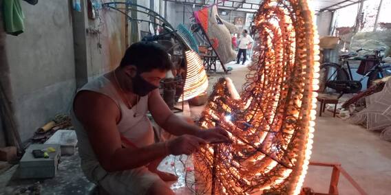 ভারতসহ সারা বিশ্বকে গ্রাস করেছে করোনা। পাশাপাশি করোনার তৃতীয় ঢেউয়েরও জল্পনা শুরু হয়েছে। সে কারণেই এবার দুর্গাপুজো কমিটিগুলি প্রায় নামমাত্র পুজো করার সিদ্ধান্ত নিয়েছে। করোনার কারণে পুজো কমিটিগুলোর এই সিদ্ধান্তে কোপ পড়েছে আলোকসজ্জাতেও। দুর্গাপুজো আসতে আর ১০০ দিনও বাকি নেই। জগন্নাথ দেবের স্নান যাত্রার পর থেকেই কলকাতা সহ জেলার পুজো উদ্যোক্তারা আলোকসজ্জার জন্য বুকিং করতে আসেন চন্দননগরে। এবার সেই বুকিং এখনও পর্যন্ত হয়নি বলেই জানা যাচ্ছে। এর ফলে আলোর রোশনাই থেকে অনেকটাই বঞ্চিত হবে কলকাতা সহ বিভিন্ন জেলার পুজো।