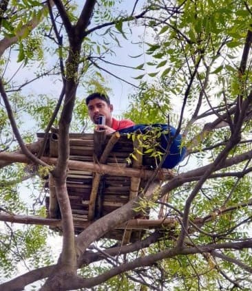 নেটওয়ার্কের সমস্যা, গাছে উঠে অনলাইন ক্লাস নিচ্ছেন এই শিক্ষক!
