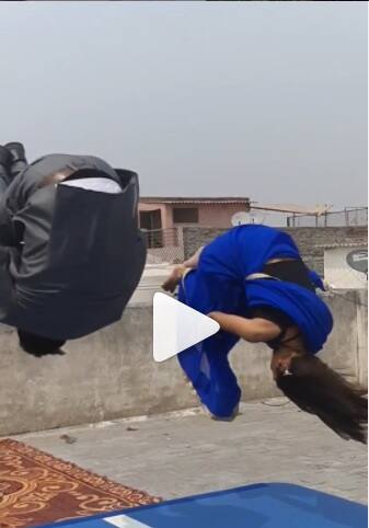 চণ্ডীগড়: বাড়ির ছাদে পাতা একটা মাদুর। সামনে মোটা একটা গদি। তাতেই জিমন্যাস্টিক্সের অসাধারণ অ্যাক্রোব্যাটিক মুভ অনায়াসে করে দেখালেন এক তরুণী। পরনে জিমন্যাস্টদের আঁটোসাঁটো পোশাক নয়, এক্কেবারে শাড়ি। তাঁর সঙ্গে লাফালেন এক পুরুষও। তিনি আবার পরে পুরোদস্তুর কোটপ্যান্ট। মহিলা টিকটক ফিটনেস মডেল, বাড়ি হরিয়ানায়, নাম পারুল অরোরা। তাঁর ইনস্টাগ্রাম প্রোফাইলে লেখা, তিনি জাতীয় স্তরে সোনাপ্রাপ্ত জিমন্যাস্ট। যোগাসনের পাশাপাশি নিয়মিত নিজের জিমন্যাস্টিক স্টান্টের ভিডিও সোশ্যাল মিডিয়ায় পোস্ট করেন তিনি।
