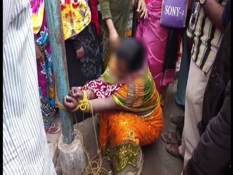 পোশাক চুরির অভিযোগ, বসিরহাটে লাইটপোস্টে বেঁধে মহিলাকে গণপিটুনি