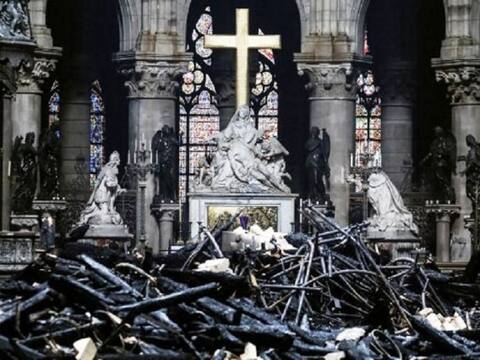 ফরাসি প্রেসিডেন্ট ইমানুয়েল মাঁকর পাঁচ বছরের মধ্যে নোত্র দাম গির্জা পুননির্মাণের কথা ঘোষণা করেছেন।